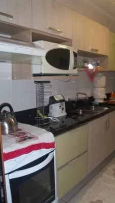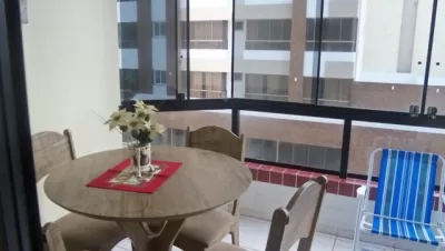 Amplo bem ventilado com boas mobílias ,WIFFI, sacada com churrasqueira, box para 1 carro, banheiro social, cozinha ,sala estar e jantar .