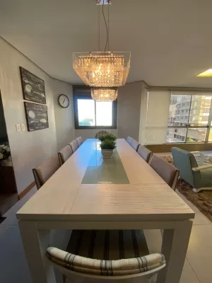 Excelente apartamento próximo do mar e na avenida revitalizada de Tramandaí, mobiliado decorado com uma delicadeza e sofisticação que você e sua família merece. Apartamento composto 05 dormitórios sendo 05 suítes, dependência de empregada com banheiro, terraço amplo com jacuzzi, área de serviço ampla com maquina lava e seca, cozinha com moveis sob medida ,living amplo, sacada integrada, ar condicionado em 04 dormitórios e sala , churrasqueira, box de estacionamento triplo, hall de entrada decorado e 02 elevadores e muito mais......