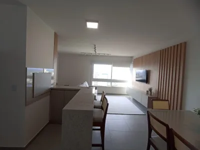 Excelente apartamento com uma vista lindissima do mar, mobiliado e decorado, composto de 03 dormitorios, sendo 01 suite, lavabo e 01 social, cozinha em ambiente aberto e integrado com um livinng espaço maravilhoso, com uma bancada americana na frente da churrasqueira, com vista para o por do sol maravilhoso, tomando seu café e fazenndo aquele belissimo churrasco, olhando para o mar, living estar e jantar,mobiliado e com uma requinte e delicadeza que você e sua familia merece, area de serviço separada, 02 elevadores, box de estacionamento duplo, salão de festa, e um hall de enntrada decorado.