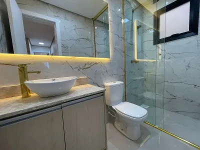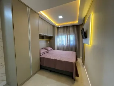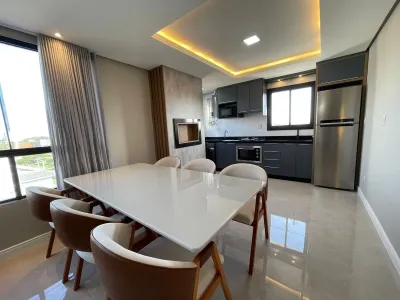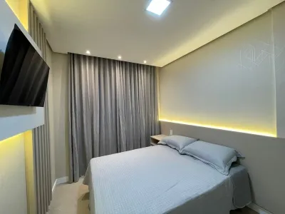 Excelente apartamento alto padrão, mobiliado e decorado, lindíssimo, com excelentes moveis sob medida, rebaixo em gesso, agua quente, apartamento composto de 02 dormitórios, sendo 01 suíte, agua quente, tudo equipado e muito moderno e sofisticado, apartamento com área total de 80,56m, posição solar leste e sul, com o box de garagem, cozinha integrada em 01 ambiente aberto com living estar e jantar, área de serviço com maquina lava e seca moderna, box de garagem, churrasqueira próximo a cozinha, elevador, salão de festa e muito mais....